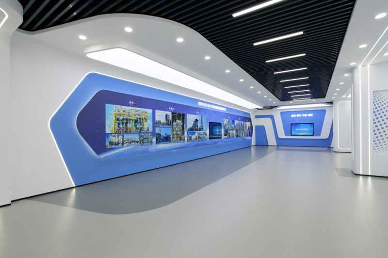 所以我們整個(gè)展廳以藍(lán)色調(diào)和白色調(diào)為主,體現(xiàn)科技公司的性質(zhì),又使整個(gè)展廳,簡(jiǎn)約而不簡(jiǎn)單,精致而不奢華,方寸之間,盡顯大氣。